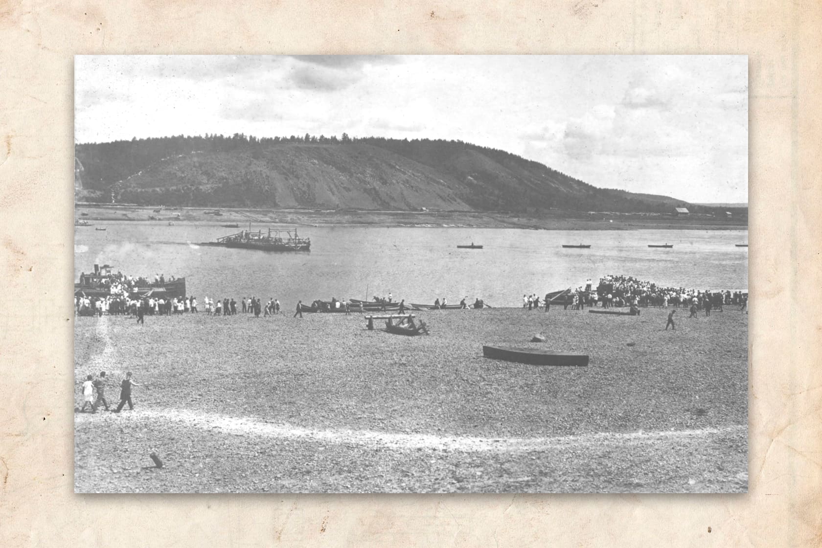 Паромная переправа через реку Томь до постройки наплавного моста, г. Кемерово, 1934
