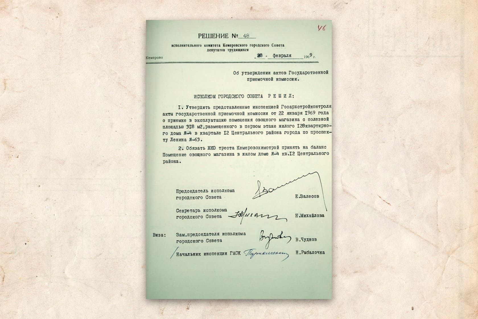 В этот день принято в эксплуатацию помещение овощного магазина на первом этаже жилого дома по проспекту Ленина в Центральном районе
